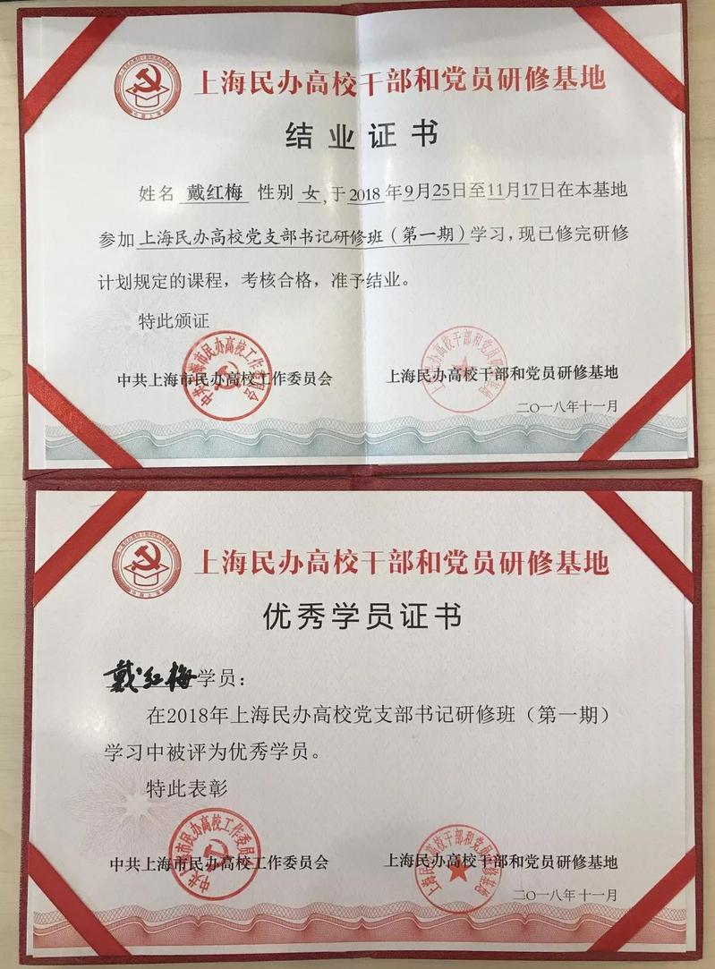 戴红梅书记顺利结业并取得“优秀学员”称号。