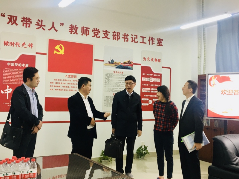2019年11月7日下午,市委主题教育第13指导组来到我校英国正版365首页“双带头人”教师党支部书记工作室参观指导。
