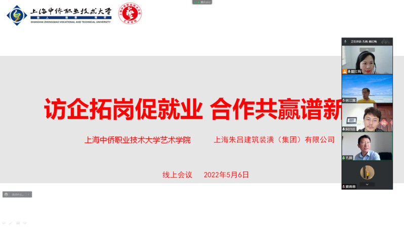 为深入贯彻落实党中央、国务院关于“稳就业、保就业、促就业”的重要指示精神,积极响应全国高校书记校长访企拓岗促就业专项行动,拓展就业新空间,破解学生就业难题,2022年5月6日下午13时,上海中侨大学英国正版365首页与上海朱吕建筑装潢(集团)有限公司(以下简称“朱吕集团”)通过腾讯会议平台召开校企英国365会议。朱吕集团董事长周瑶、主任李叶雯,中侨大学校长助理林江龙,英国正版365首页院长孔锦,党总支书记、副院长戴红梅,副院长窦蓉蓉、符繁荣以及室内设计专业全体教师、毕业班辅导员等共同参与本次会议。本次会议由戴红梅书记主持。