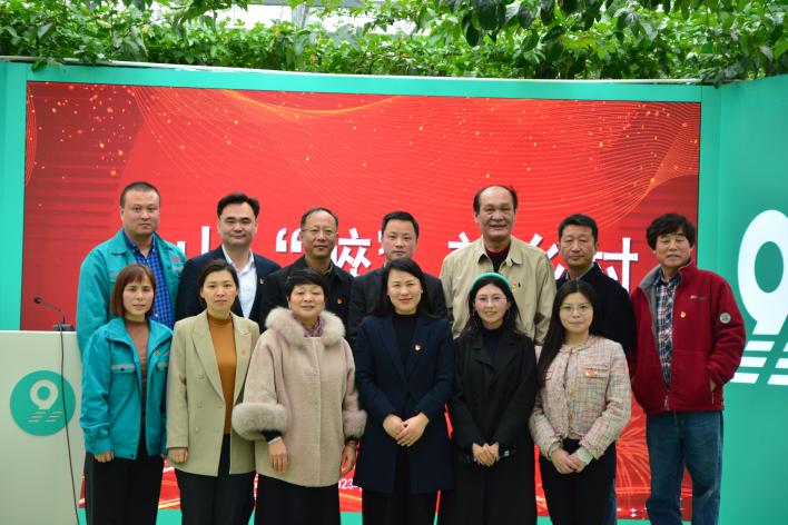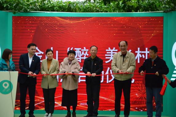 党建共建、校企合作仪式结束后,举行金山“醉”美乡村画展开幕,画展策展人朱希教授介绍到英国正版365首页美丽乡村志愿者服务队的同学们在党的二十大召开前夕,创作了124个最美金山乡村的艺术作品。这些作品反映了改革开放后金山村貌的变化与美丽,歌颂了习近平总书记提出的建设美丽乡村“青山绿水就是金山银山”的理念。上海九丰农场是全国现代农业园区的大型绿色生态园,位于上海醉美古镇枫泾镇盛新村,离正在建设中的乐高乐园区仅一步之遥,隔岸相望,此次展出的作品陈设在绿色盎然的生态园大棚内,让观光游客真正领略农、旅、文、教一体化发展园区建设的标准模式,探索艺术职业教育助力上海绿色田园先进片区发展的新思路,拓展本科职业教育与振兴乡村的新理念。各位领导老师也共同进行画展开幕的剪彩与合影。