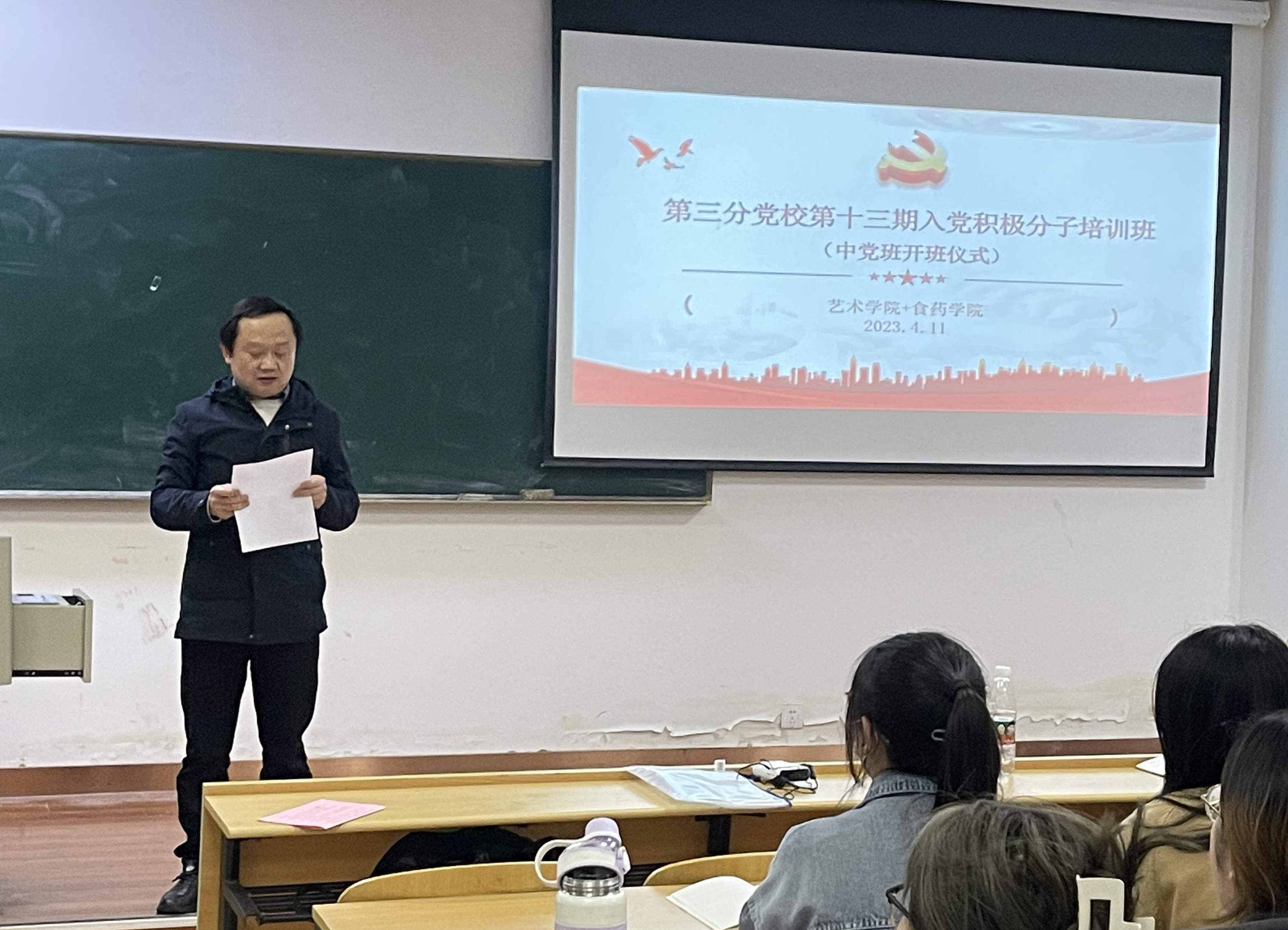 接着食品药品学院直属党支部书记、院长吴酉芝作动员讲话。此次开班仪式的召开,旨在提高学生对于此次入党培训班的学习积极性,向学生讲解培训班的具体课程及最终测评的分值占比。对于入党积极分子的培训课程,学员们的学习过程必须将理论联系实际,实事求是,在理论的基础上实践,在实践中检验与发现真理。