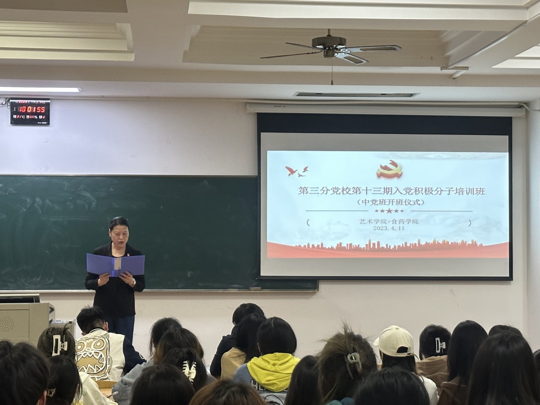 接着食品药品学院直属党支部书记、院长吴酉芝作动员讲话。此次开班仪式的召开,旨在提高学生对于此次入党培训班的学习积极性,向学生讲解培训班的具体课程及最终测评的分值占比。对于入党积极分子的培训课程,学员们的学习过程必须将理论联系实际,实事求是,在理论的基础上实践,在实践中检验与发现真理。