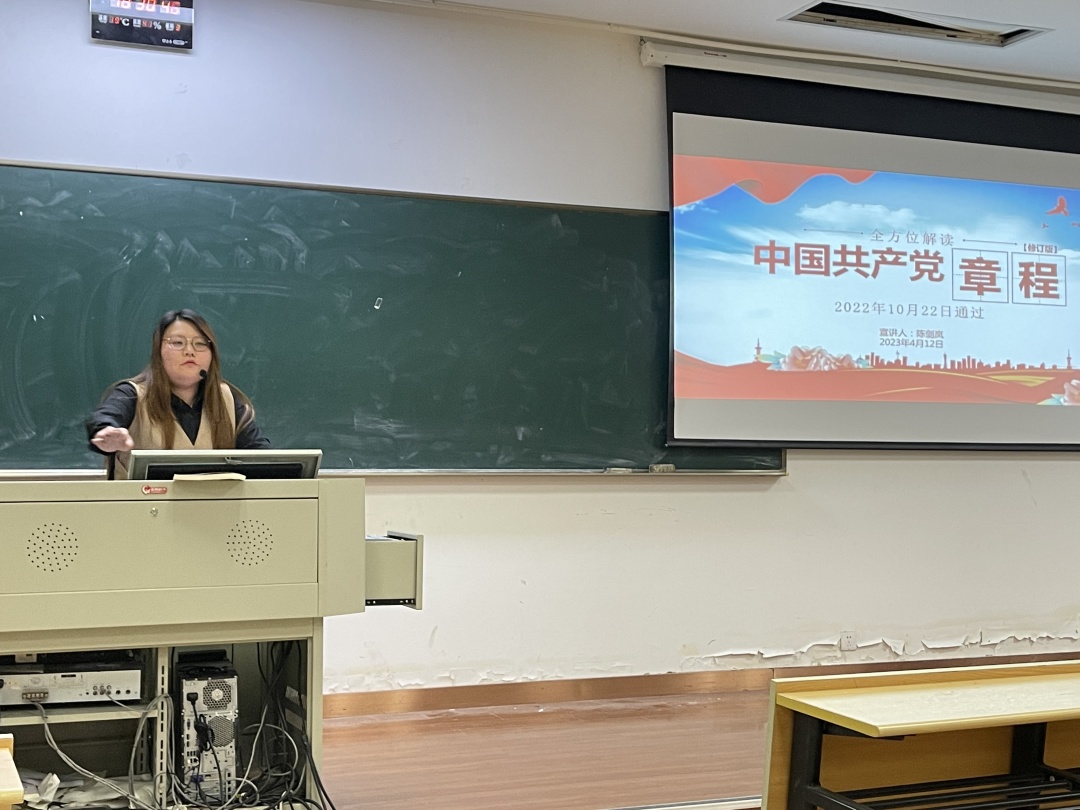 2023年4月12日晚上6点30,第三分党校第十三期中党课程第二讲在6号楼406举行。课程由食品药品学院直属党支部副书记陈剑岚老师讲解。