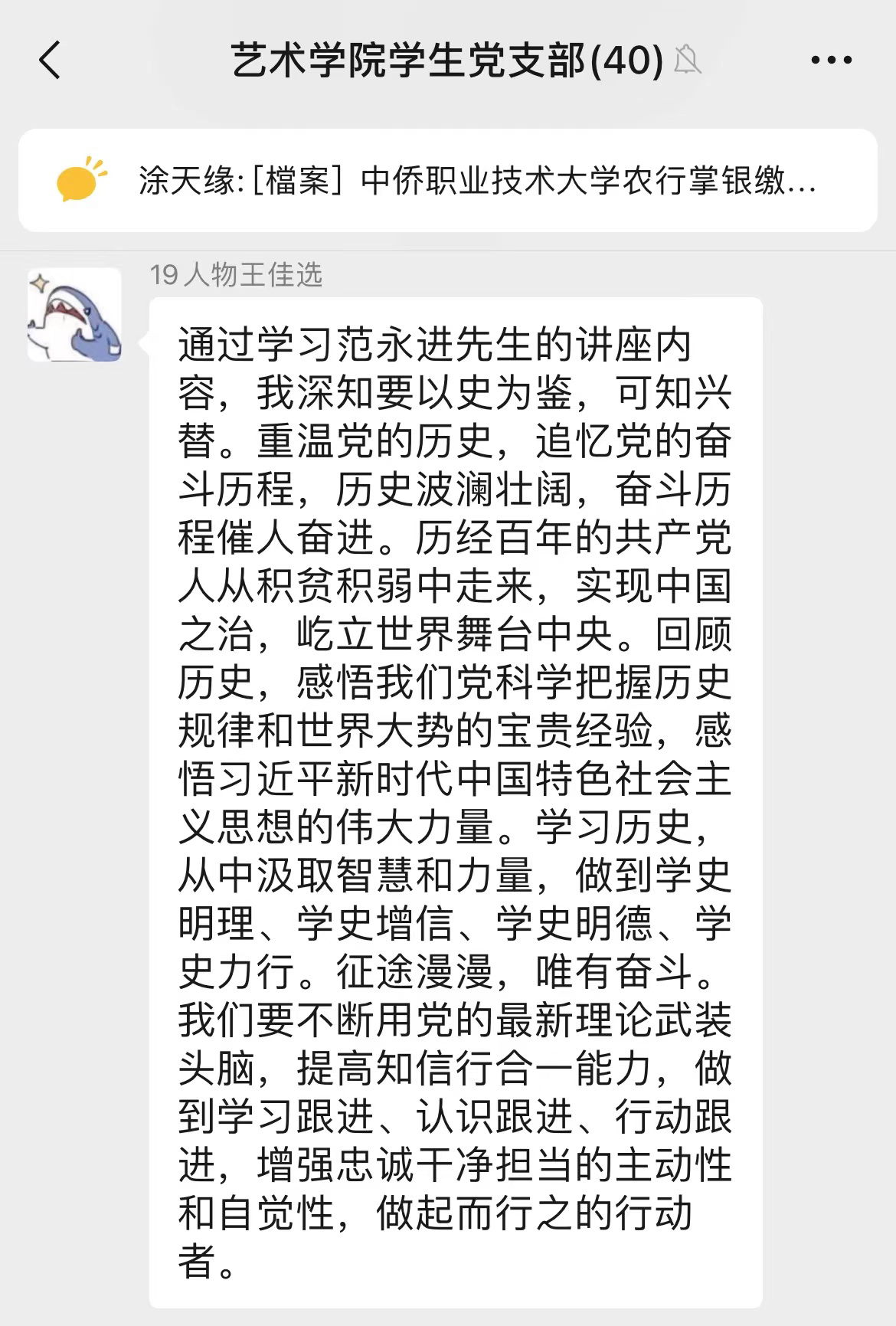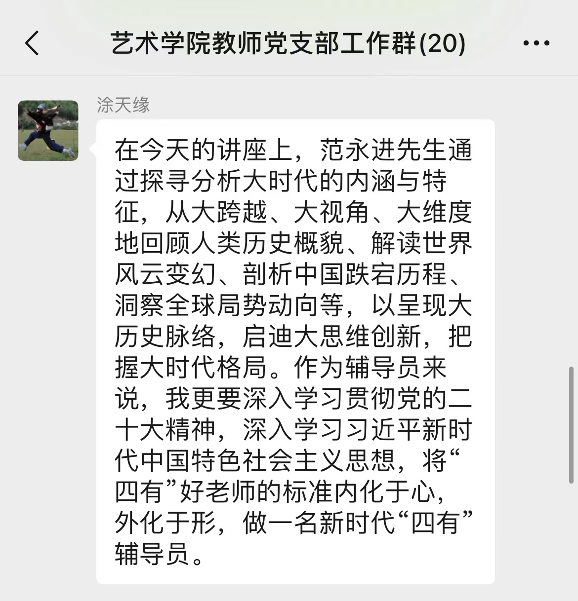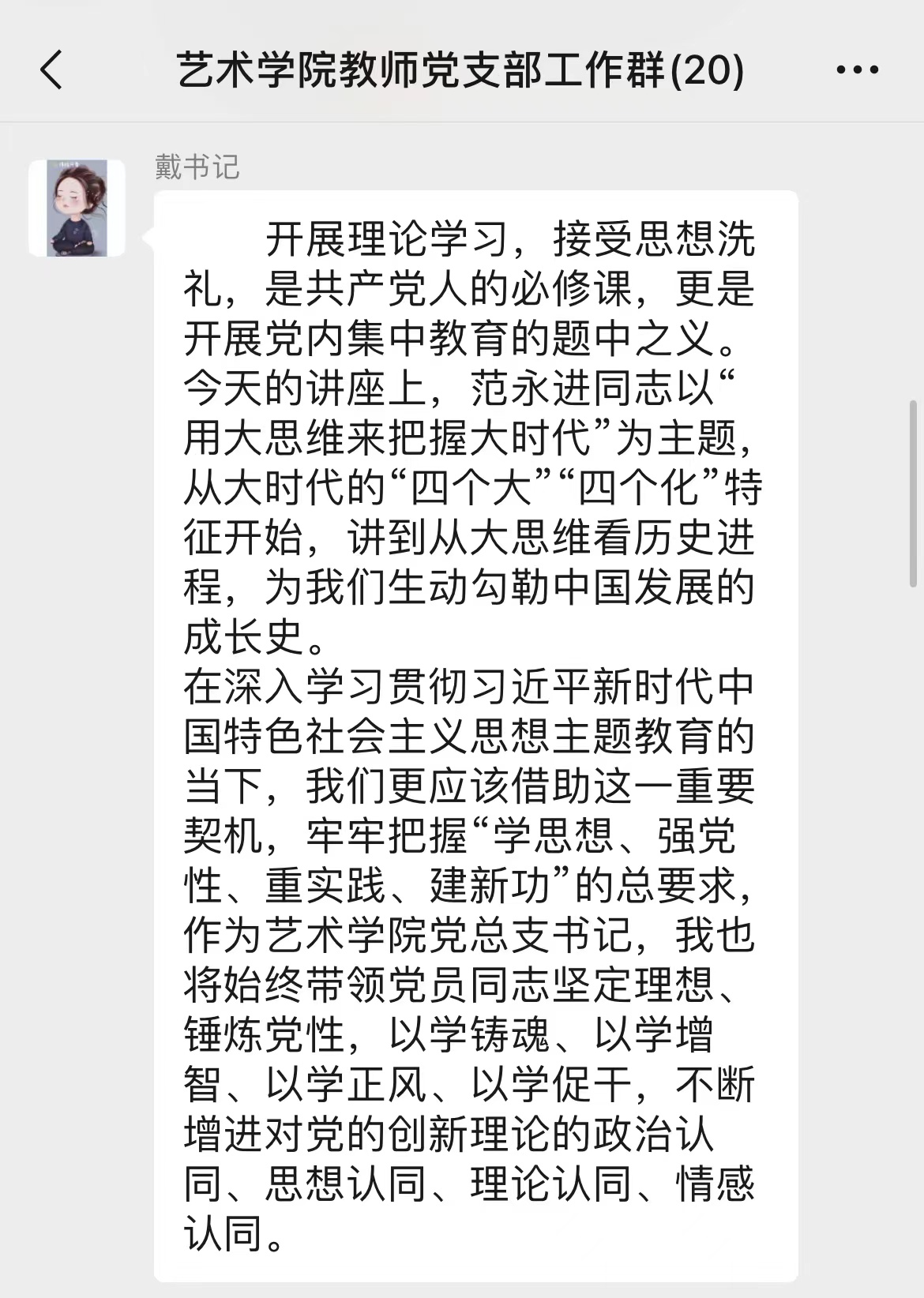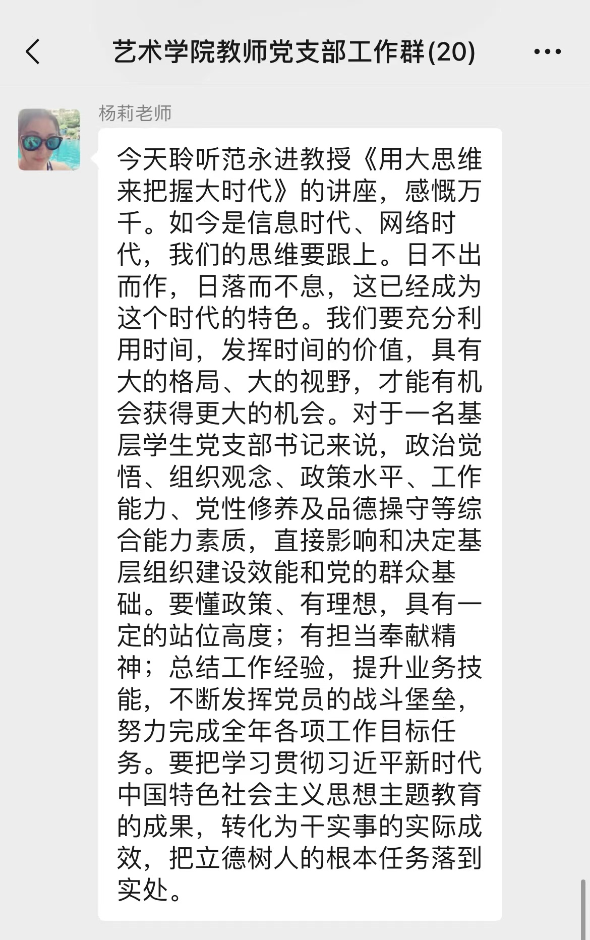 会后,党员师生也在支部群里发起感悟讨论,交换学习心得,气氛热烈。