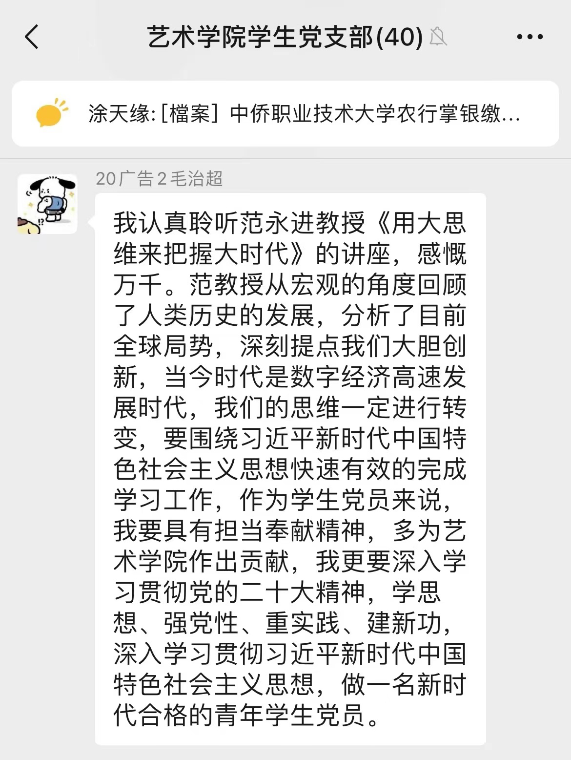会后,党员师生也在支部群里发起感悟讨论,交换学习心得,气氛热烈。