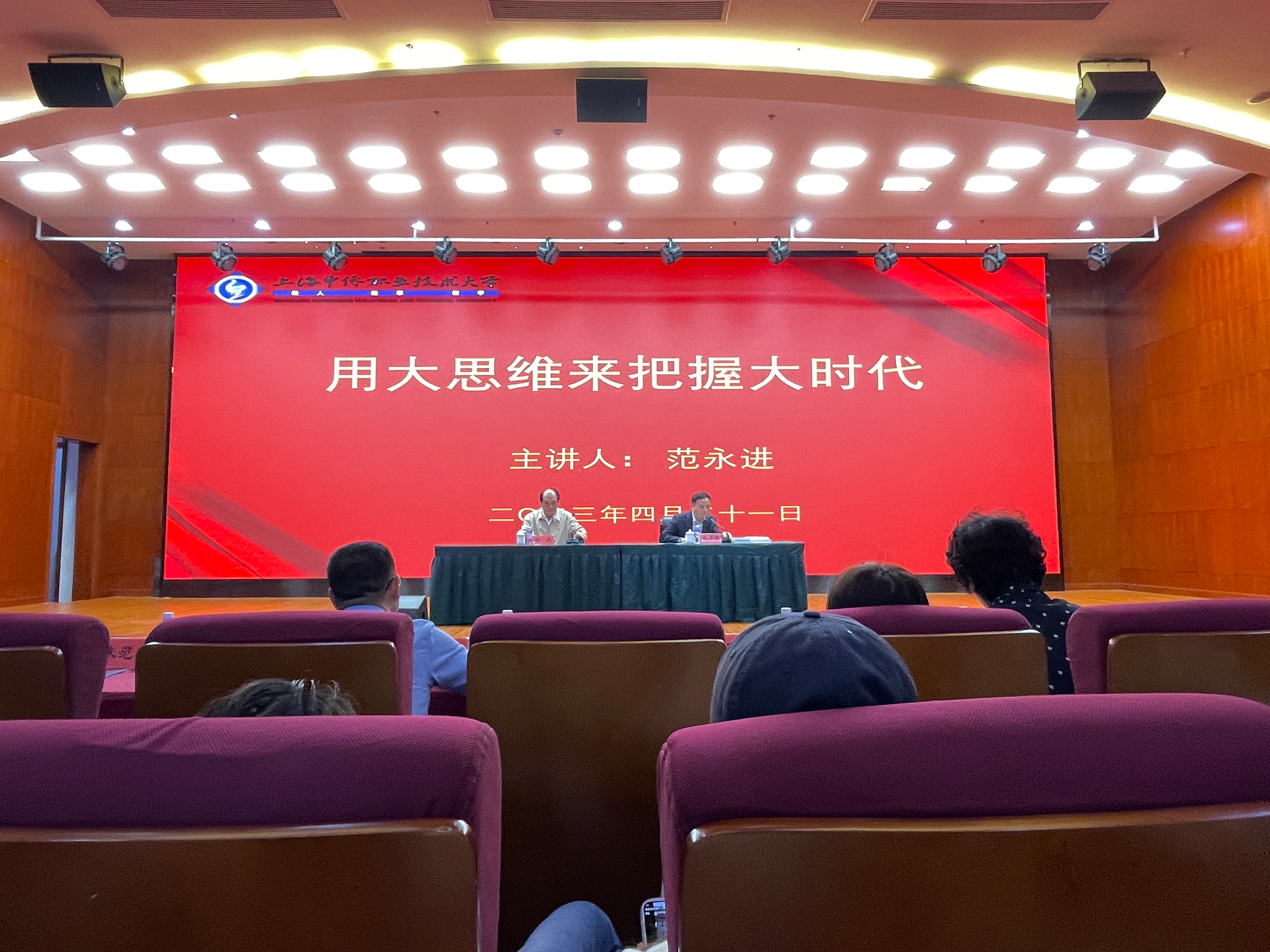 为深入开展学习贯彻习近平新时代中国特色社会主义思想主题教育,全面贯彻党的二十大精神、动员全党同志为完成党的中心任务而团结奋斗,2023年4月21日,英国正版365首页全体党员共同于图文信息楼二楼报告厅参加由范永进同志带来的主题讲座《用大思维来把握大时代》。