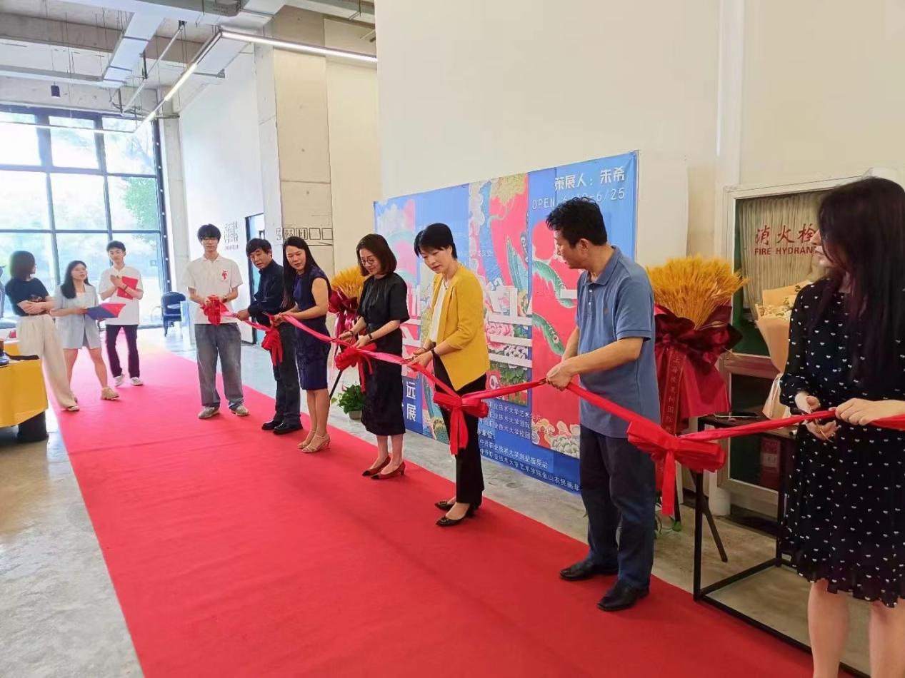 接着第二项议程,由策展人朱希教授在开幕式上介绍艺术展筹备情况。朱希教授介绍说,近年来在艺术职业教育如何适应变革的问题上提出了立德树人,产教融合,校企合作的改革思路,从而导向性的搭建培养“有范,有慧,有才”的三有学生,为此在策展时,把在尊重当下多元开放的文化艺术背景下,将年轻人的审美趣味提升作为策展的主要方向,将活态传承非遗文化,创新融入思政元素作为本次画展的主要内容。