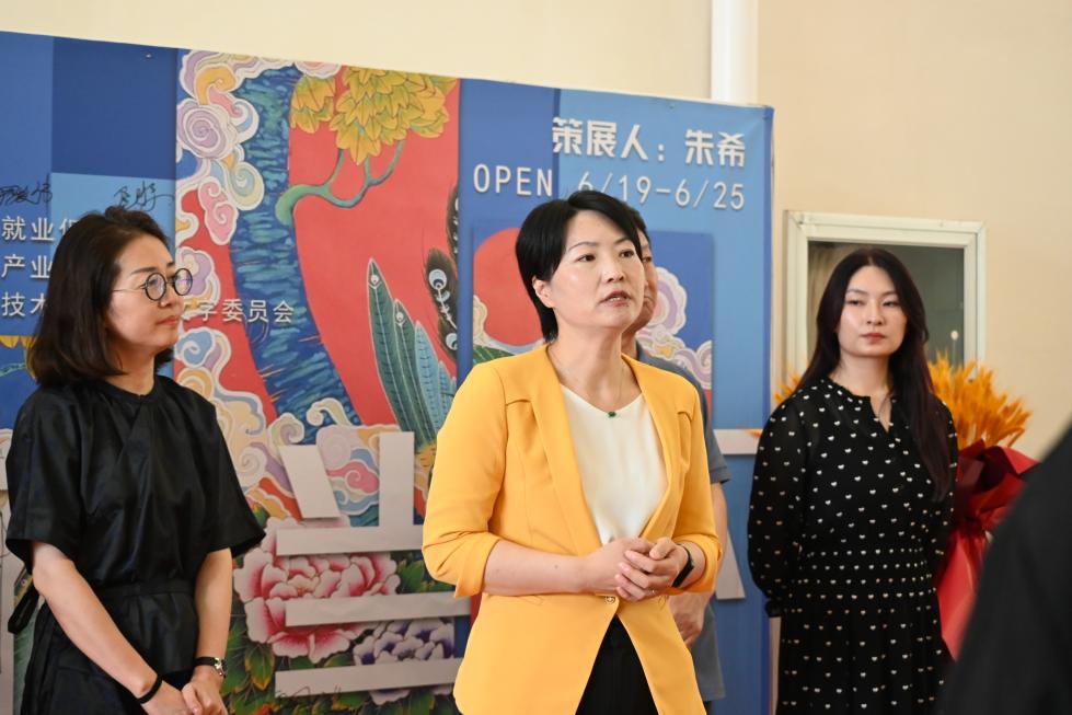 开幕式第一项议程由金山区人社局党组成员、副局长徐佳发表致辞。徐佳表示,孟泽远同学以“‘梦’在当下”为主题,借助海阔·东岸文创产业园的展示平台,用作品表现出新时代非遗传承人的活力与朝气,通过这次画展可以看到中侨大学英国正版365首页的育人模式正在不断创新,也在积极探索新思路,找寻新方法,正在职业艺术教育中承担起新的社会责任。