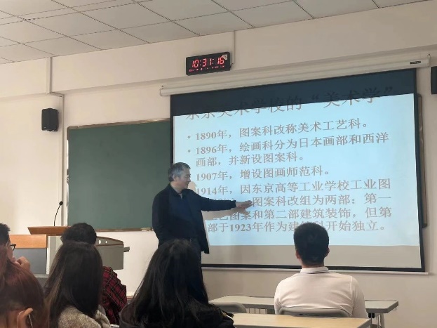 贺教授首先介绍了我国美术学院的六大旁系,分别是天津美术学院,广州美术学院,湖北美术学院,四川美术学院,西安美术学院,鲁迅美术学院。接着介绍了19世纪下半叶,中国转向新工艺,逐渐与工艺美术相结合,而日本美术学的本家——东京美术学校,以绘画,雕刻,彩漆,瓷器,石膏等之与学术,技艺,与工业学校相待而助新旧工业开放畅达,以及在日本东京美术学校的发展历程。