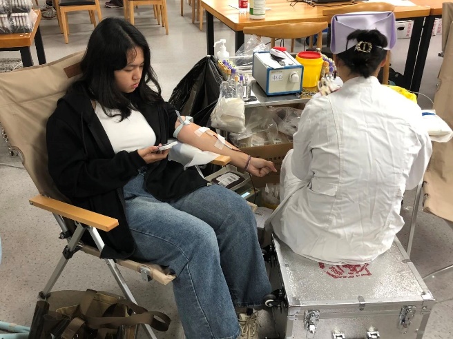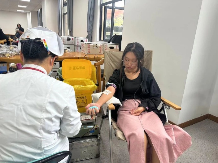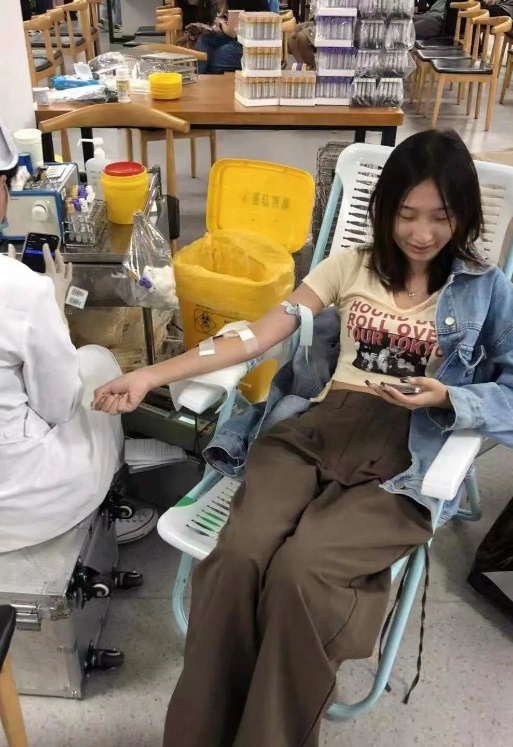 在本次献血活动中,有许多23级新生参与其中。他们中的很多人是第一次献血,面对抽血的针管有些许的紧张与不安,但是他们用笑语嫣然冲淡了内心的恐惧。一双双有力的手伸向医护人员,流出饱含青春激情的热血,而这些热血有一天将带给他人以生的希望。