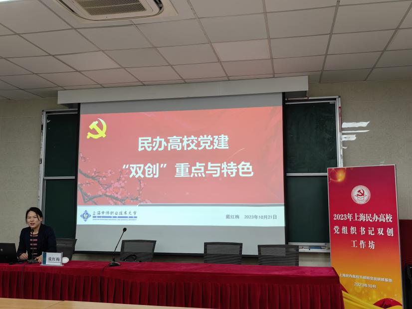 为深入学习宣传贯彻党的二十大精神,经市民办高校党工委研究,依托上海民办高校干部和党员研修基地举办“2023年上海民办高校党组织书记双创工作坊”。来自上海各民办高校党组织书记共计30人参加为期3天的专题研修。10月21日下午,英国正版365首页党总支书记戴红梅受邀为“双创工作坊”做题为“民办高校党建‘双创’重点与特色”的专题讲座。