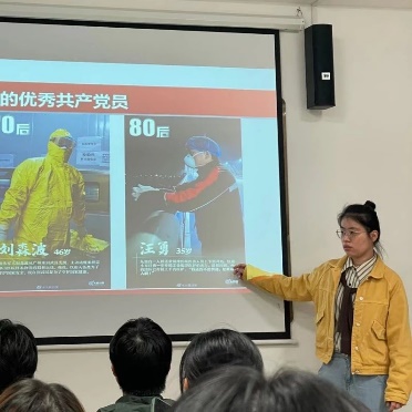 第二部分中,涂老师以疫情防控为大背景,向各入党积极分子介绍我们身边的优秀共产党员,从30后到00后,党组织中不缺乏响应号召的庞大力量,不惧艰难险阻,冲锋一线,可谓是党有号召我有应。