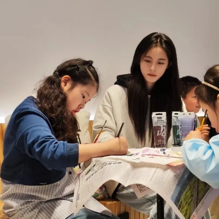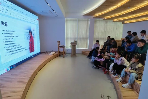 来自上海两个区九至十六岁的五十多位学生与其家长一起邻听了朱希教授生动富有艺术感染力非遗传承课,授课过程朱希教授详细介绍了上海金山农民画的起源、发展传承与创新,以及近来中侨大学在非遗传承创新工作中做的一些详例分享给大家,同时,也介绍了绘画过程的一些基本技法,材料与艺术风格,让市区小朋友深入了解了上海一张靓丽名片一一非遗金山农民画艺术的魅力。