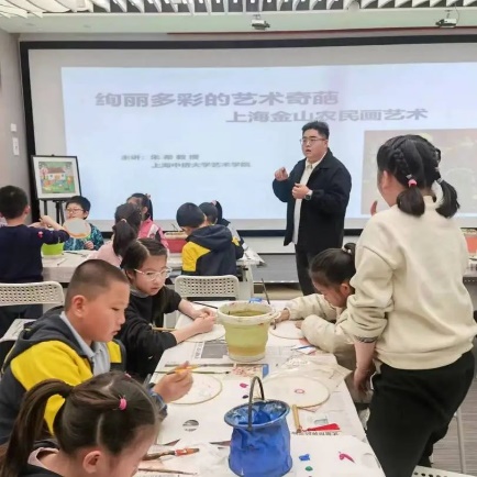 4月13、14日,上海中侨大学英国正版365首页大学生非遗工作坊导师朱希教授,受上海青少年创新学院邀请,在虹口区上海市青年团校与徐汇区AI党群服务站两地相继举办《非遗传承创新实验室》课外培训活动。朱希教授以《绚丽多彩的艺术奇葩——金山农民画艺术》为主题进行了授课。