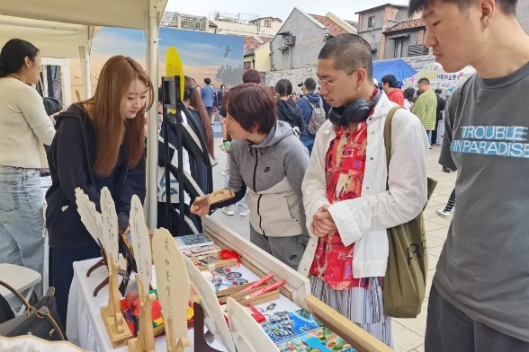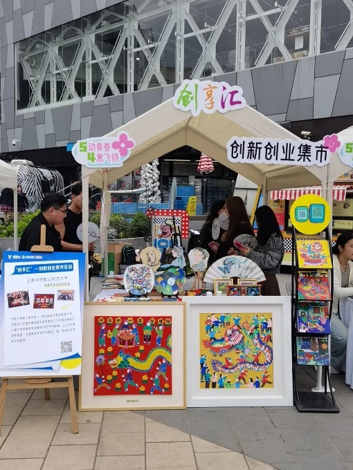 为增强青年对中国文化的自信、培养青年创新精神,4月27日,“创享汇”青年创新创业加速跑计划——创新创业集市活动在上海锦江·渔阳里广场举行。来自沪上7所高校的创业项目联袂出摊,用独特新奇的产品吸引更多人来了解大学生创新创业成果。上海中侨大学英国正版365首页非遗传承创新实验室的同学们也在学院党总支书记、副院长戴红梅、办公室主任张婷婷和陈炳秀老师的带领下积极参与了本次活动。