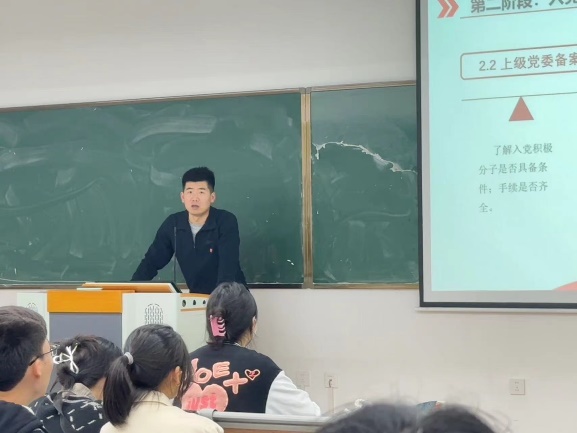2024年4月29日晚上6时30分,第二分党校第十四期中党课程第三讲于10号楼305举行。课程由智能制造学院团委书记刘小刚老师为各入党积极分子进行讲解。