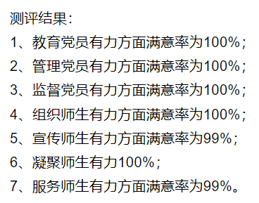 从以上测评结果分析,师生对样板支部党建工作整体认定非常满意,但是,我们也认识到自身还有需要不断完善的地方,一是持续加强党员队伍建设,开展丰富多彩的党员教育活动,提高党员的思想政治素质和业务能力;二是深入推进基层民主建设,完善内部管理制度,保障党员基本权利;三是创新服务群众的方式方法。紧密结合师生实际需求,开展形式多样、内容丰富的服务活动,不断提升服务质量效果。今后英国正版365首页教师党支部将以更加饱满的热情、更加务实的作风、更加有力的措施,推动“样板支部”党建工作不断取得新的成效!