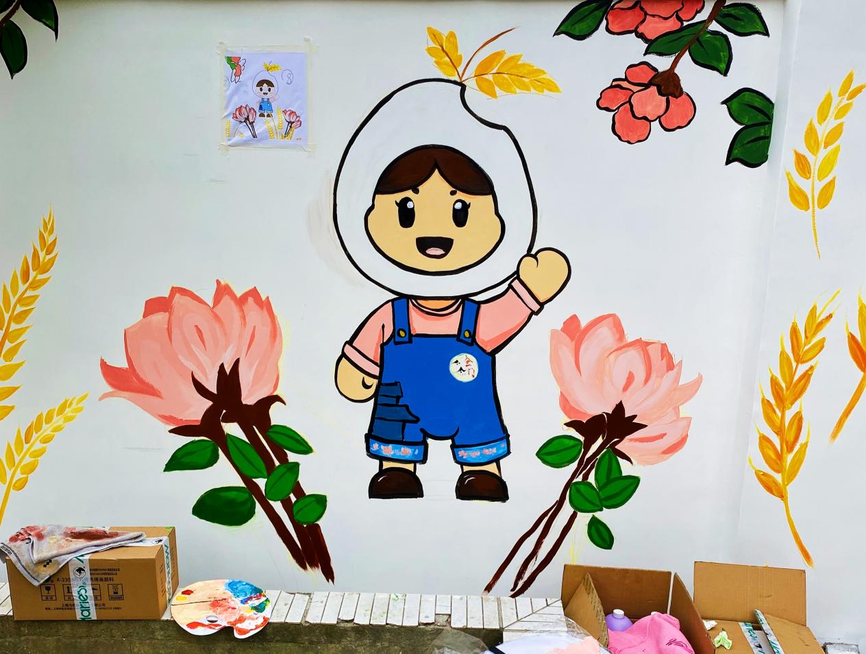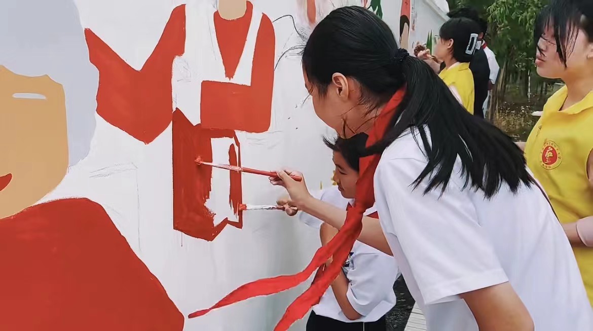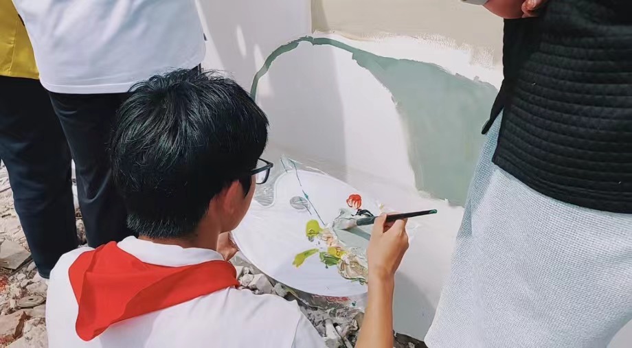 最后让我们来欣赏一下由英国正版365首页“美丽乡村”志愿者服务队与亭新中学同学们共同完成的墙绘作品吧。