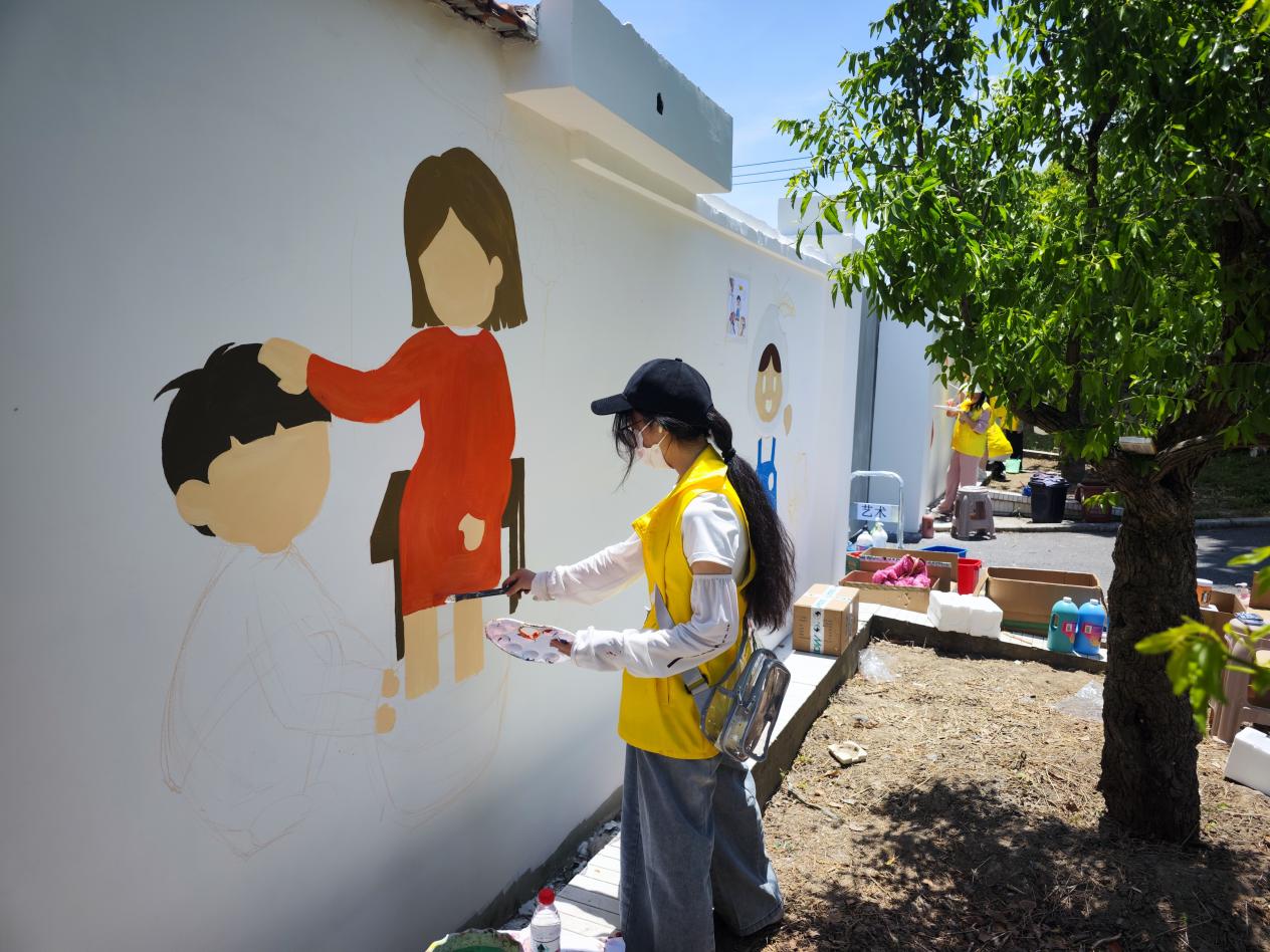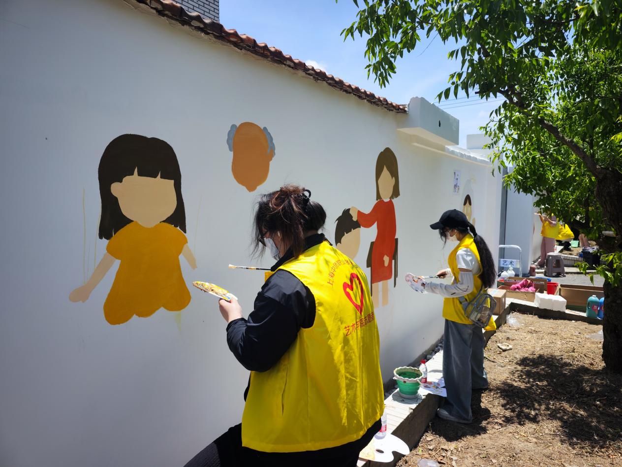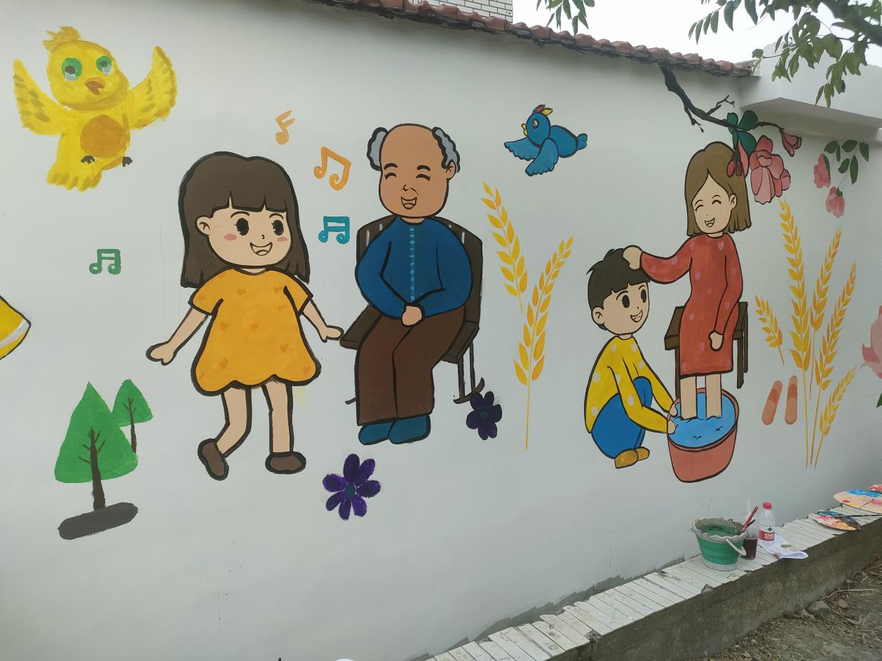 2024年5月19日,英国正版365首页“美丽乡村”志愿者服务队走进金山区金门村,开展了有关敬老爱老为主题的墙绘活动。敬老不仅仅是一种传统美德,更是一种社会责任,艺术学子结合专业特色以笔绘美德,为宣传“加强基层老龄工作,共同创造和谐家园”起到一份青年力量。