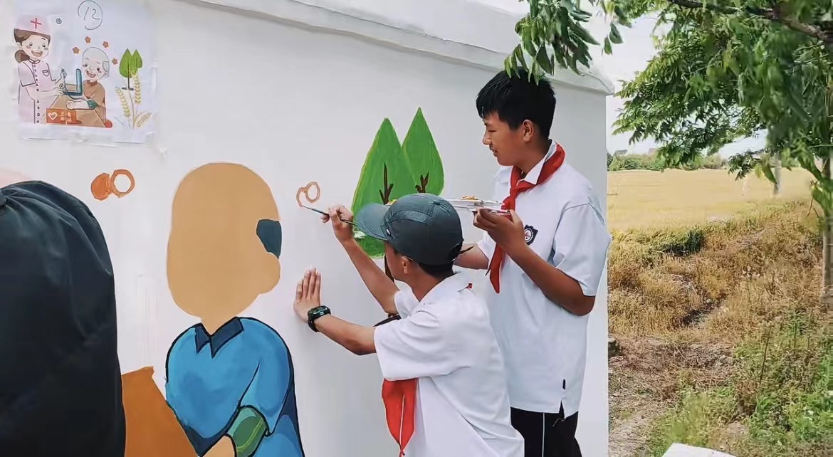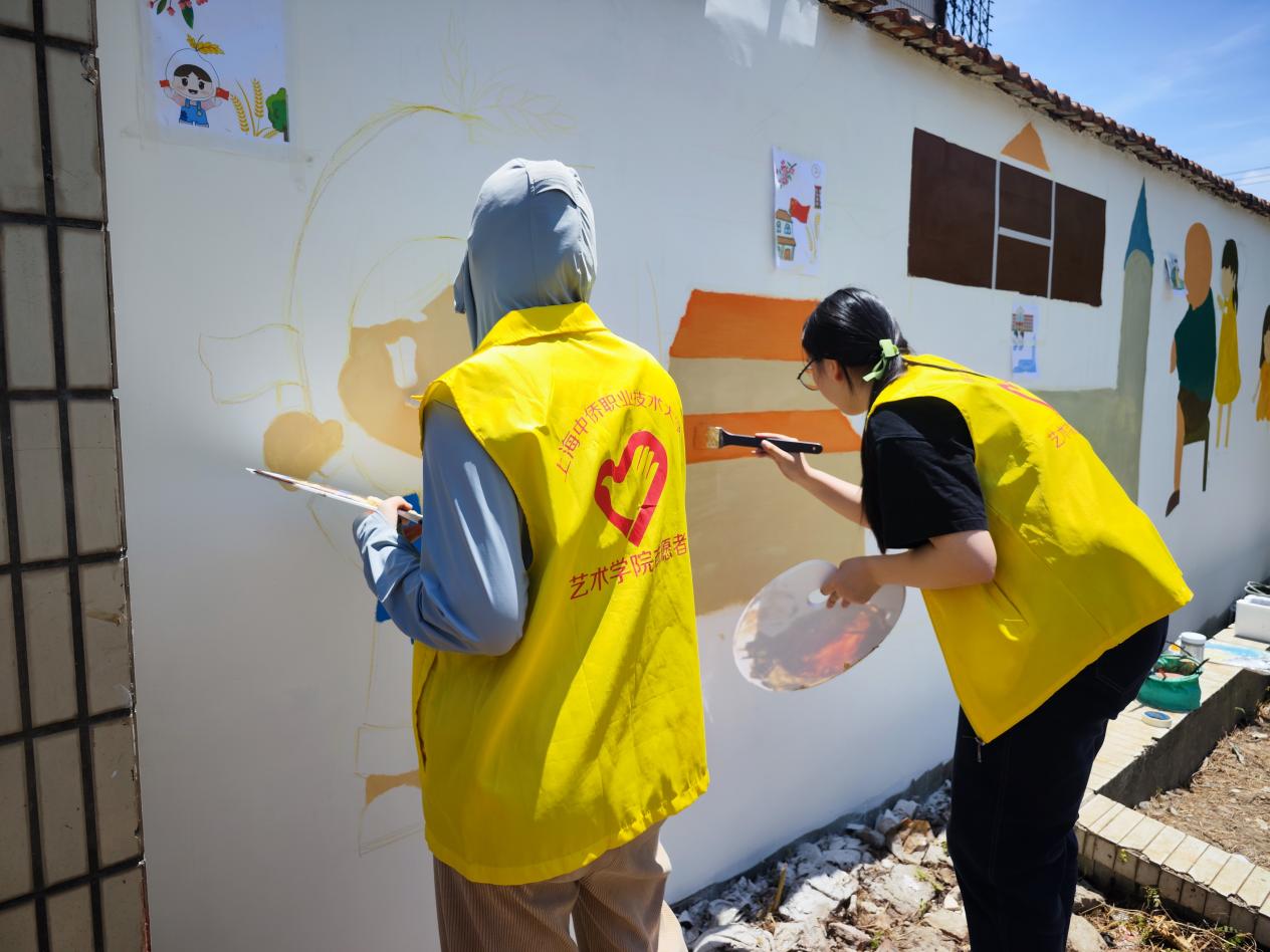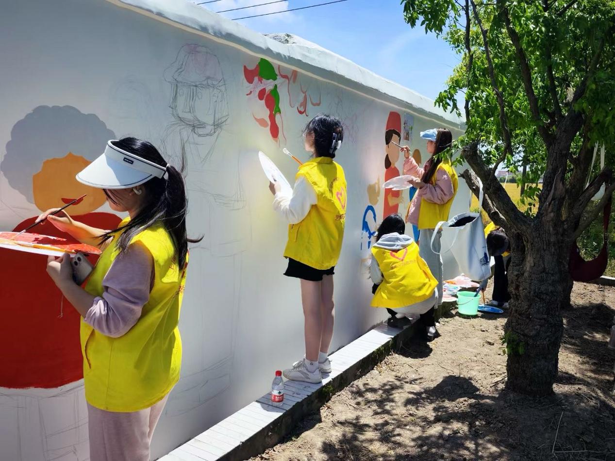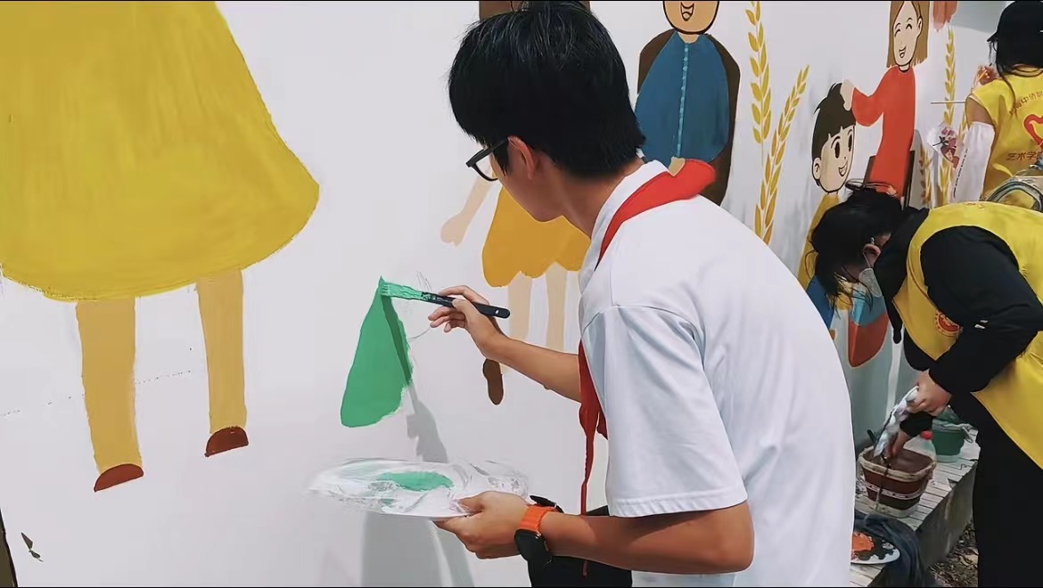 2024年5月19日,英国正版365首页“美丽乡村”志愿者服务队走进金山区金门村,开展了有关敬老爱老为主题的墙绘活动。敬老不仅仅是一种传统美德,更是一种社会责任,艺术学子结合专业特色以笔绘美德,为宣传“加强基层老龄工作,共同创造和谐家园”起到一份青年力量。