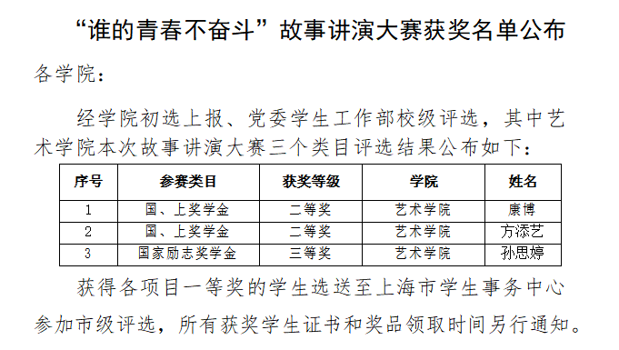 岁月因青春慨然以赴而更加静好,世间因少年挺身向前而更加瑰丽,青年以青春奋斗为底色,书写瑰丽未来之华章。恭喜康博、方添艺同学获得谁的青春不奋斗”故事演讲大赛二等奖,孙思婷同学获得谁的青春不奋斗”故事演讲大赛三等奖。