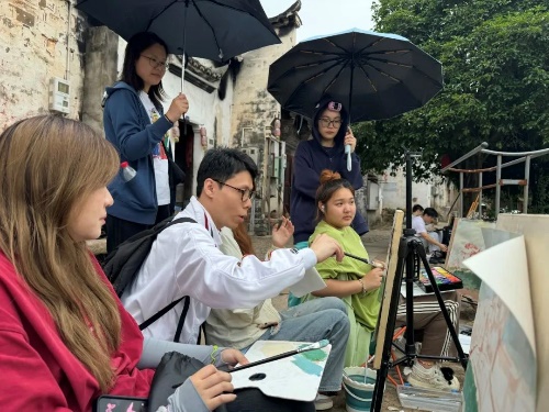 四天的写生之旅中,学生们感受着龙游的山水,用画笔捕捉每一处独特的风景。他们穿梭于古村落、漫步在田野间,将所见所感融入自己的作品中。这次实践不仅锻炼了他们的绘画技能,更让他们学会了用心去感受生活、去体验自然之美。