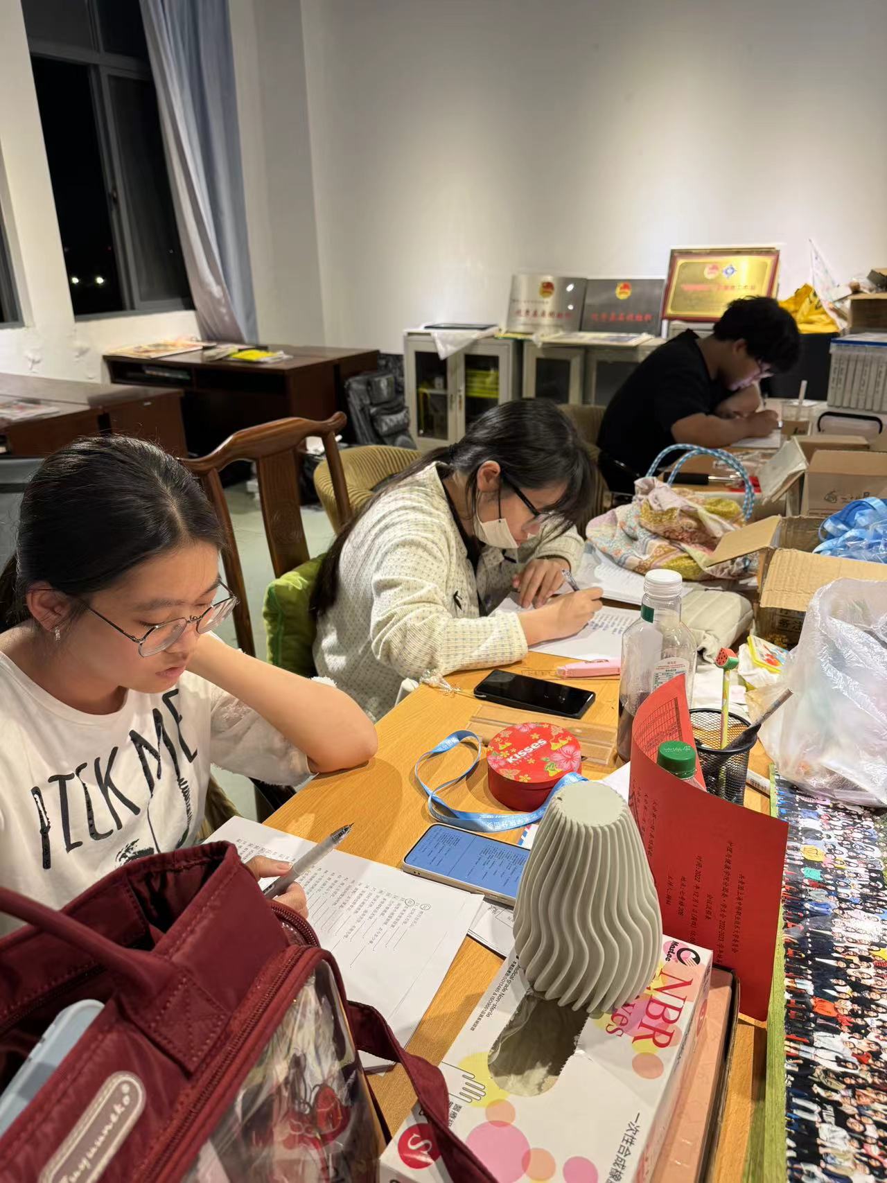 艺术学子在赛前于英国正版365首页团委办公室集中备赛,思绪的整理、纸笔的摩擦造就他们完满的结果。