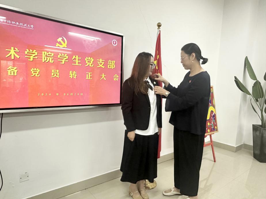 最后,杨莉书记为王兆轩、孙王奕、顾朱怡同志佩戴党徽,支部全体党员表示祝贺。杨书记做总结讲话,她首先向三位同志表示祝贺,并提出殷切希望,希望同志们要进一步坚定理想信念,严格按照共产党员的标准要求自己不断提高党性修养,以身作则、率先垂范、加强学习、发扬优良的工作作风,为学校发展和党组织建设做出更大贡献!