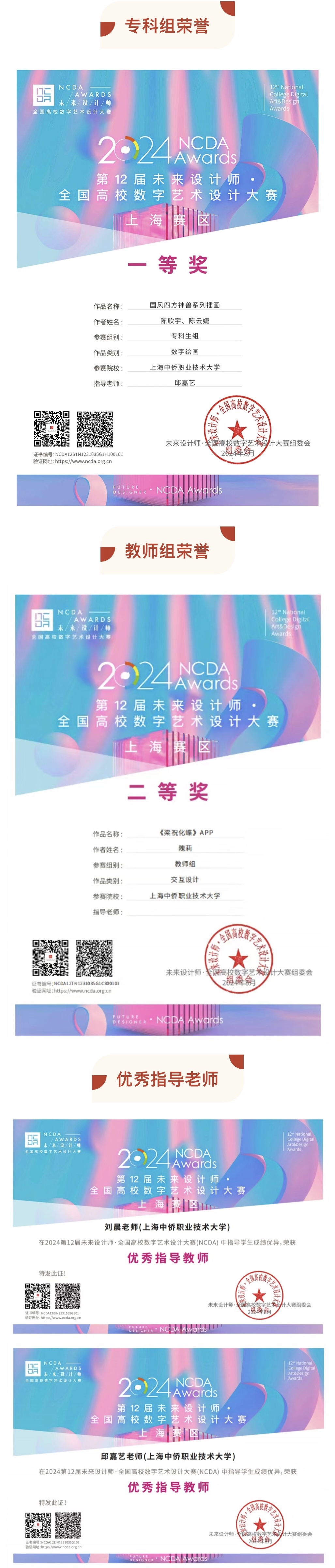 未来设计师·全国高校数字艺术设计大赛(NCDA)作为入选《全国普通高校学科竞赛排行榜》的国家级大学生竞赛,其获奖成果是对英国正版365首页教学水平和学生能力的高度认可。英国正版365首页将继续加强学生创新与实践能力培养,推动未来设计向好向前发展!