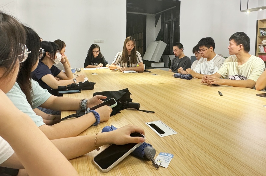 朱丽婧同学向各部门人员补充其余工作安排,并与刘嘉欣老师一同鼓励大家能够积极参与到学生活动工作当中,维持学生活动的质量与趣味性,并融入学院特色。