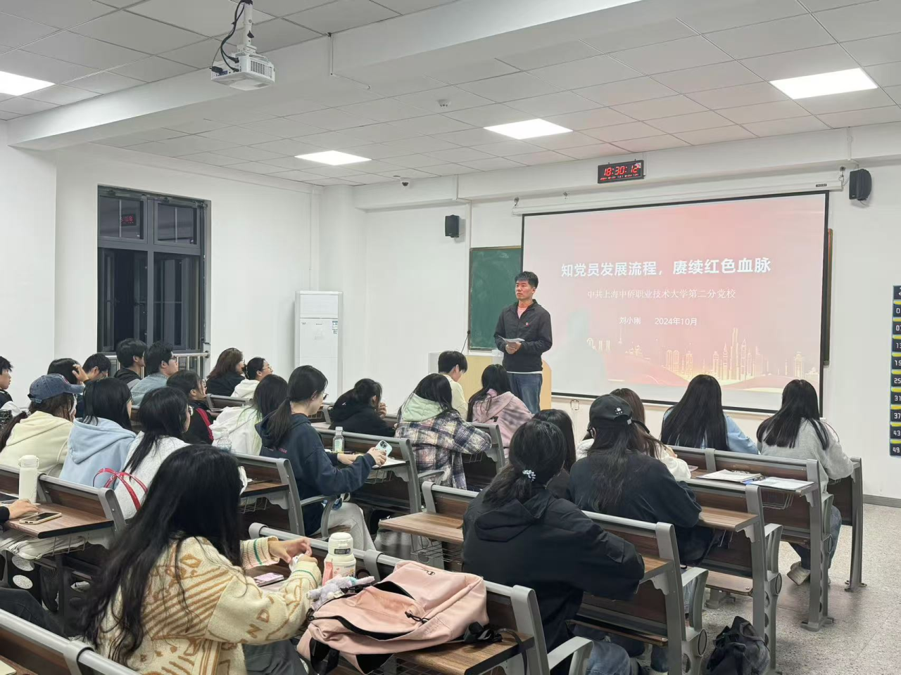 2024年10月23日晚上6时30分,第二分党校第十六期中党课程第三讲于10号楼309举行。课程由智能制造学院团委书记刘小刚老师为各入党积极分子进行讲解。