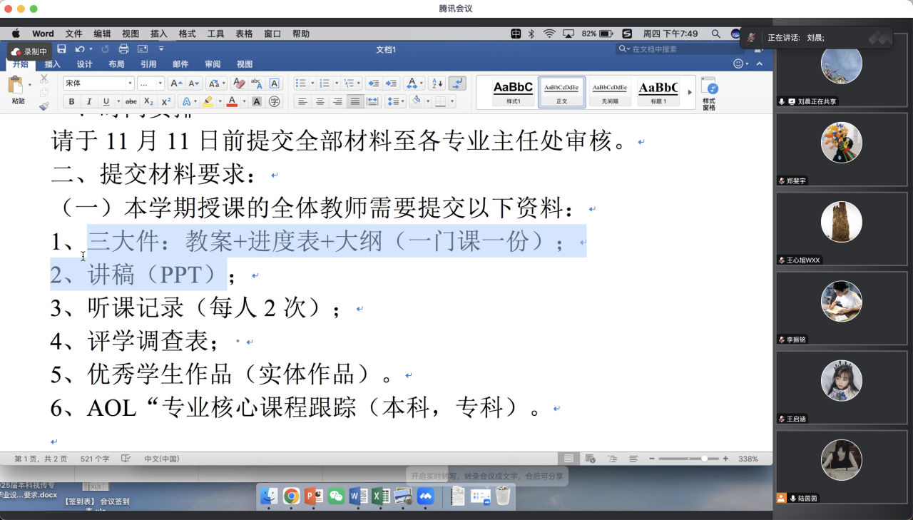 最后,刘主任对期中教学检查工作进行了详尽部署。检查工作将围绕以下两个核心方面展开: