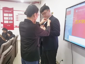 最后,学生党支部书记杨莉同志为李舒安、居里、黄杨瑒、孙哲伊同志佩戴党徽,支部全体党员表示祝贺。