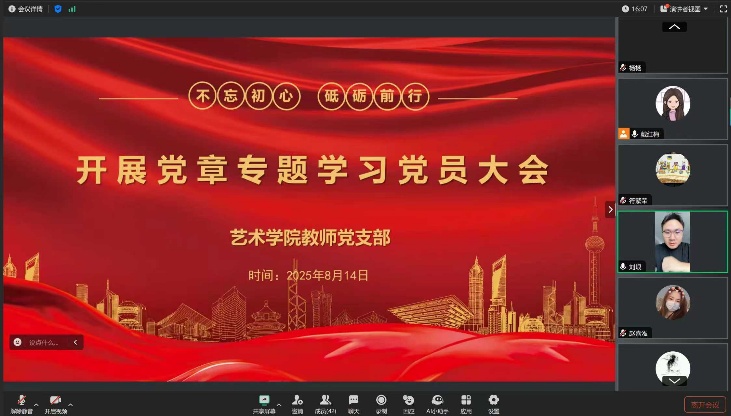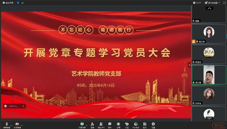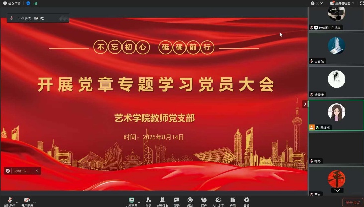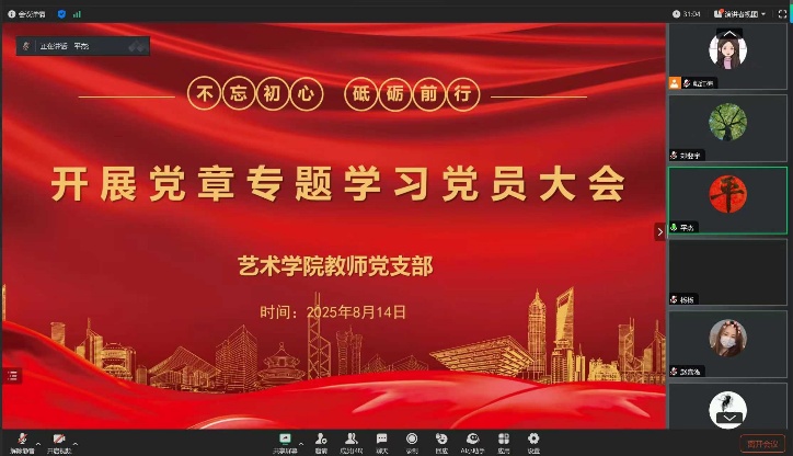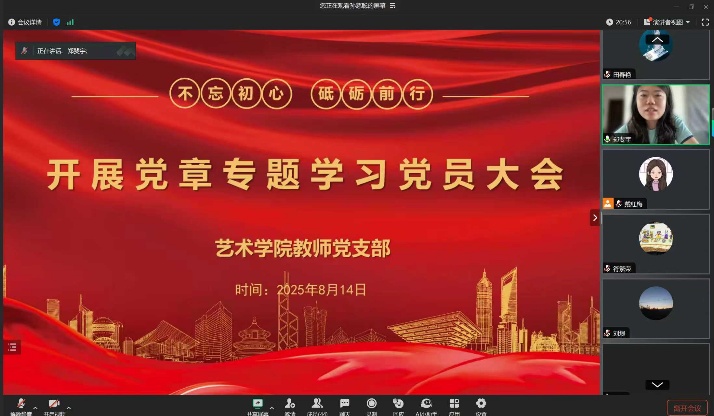 2025年8月14日,英国正版365首页教师党支部全体党员齐聚“腾讯会议”云端,开展党章专题学习。校党委书记平杰教授,校副校长、英国正版365首页党总支书记戴红梅教授,党总支副书记杨莉,学院副院长符繁荣教授及英国正版365首页教师党支部全体党员参加了此次会议。